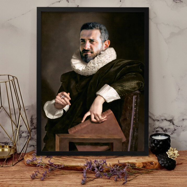 Fii tu eroul Portretului Regal, o imprimare unică, care va fi creată din fotografia trimisă de tine . Un cadou nemaipomenit, datorită căruia persoana iubită se poate simți prințesă, general de armată sau chiar rege! Tot ce ai nevoie este o fotografie de bună calitate, pentru ca graficianul nostru să realizeze un design profesional în stilul ales de Tine. Odată ce ai aprobat designul, vom crea un cadou care îi va impresiona pe cei dragi.REALIZAREA