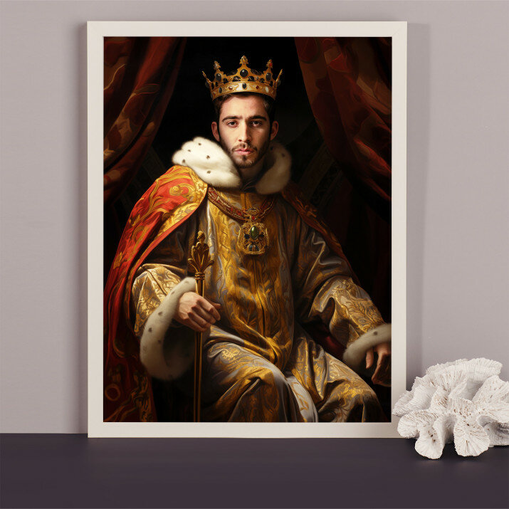 Fii tu eroul Portretului Regal, o imprimare unică, care va fi creată din fotografia trimisă de tine . Un cadou nemaipomenit, datorită căruia persoana dragă se poate simți un adevărat Domnitor sau Rege! Tot ce ai nevoie este o fotografie de bună calitate, pentru ca graficianul nostru să realizeze un design profesional în stilul ales de Tine. Vom crea un cadou care cu siguranță îi va impresiona pe cei dragi.REALIZAREA