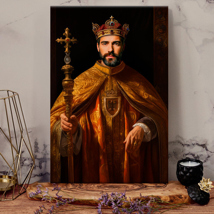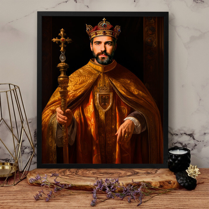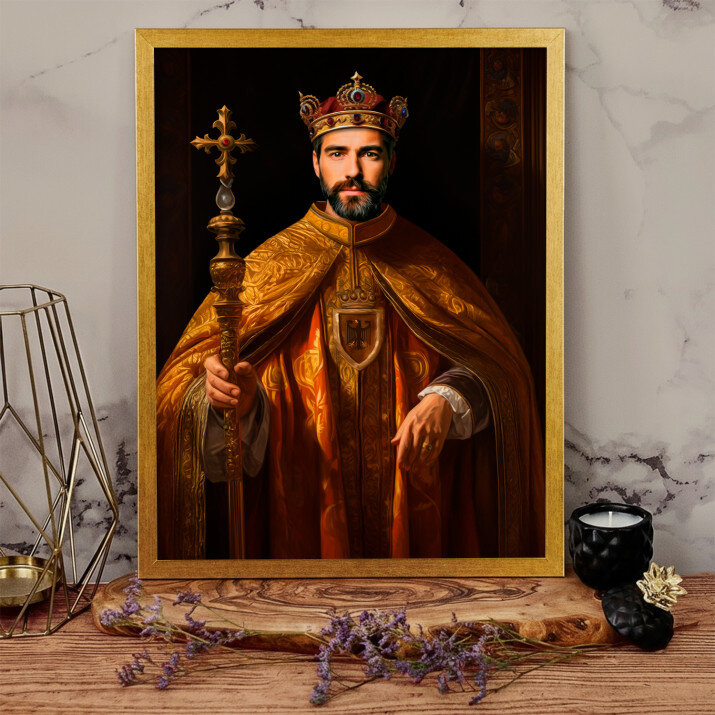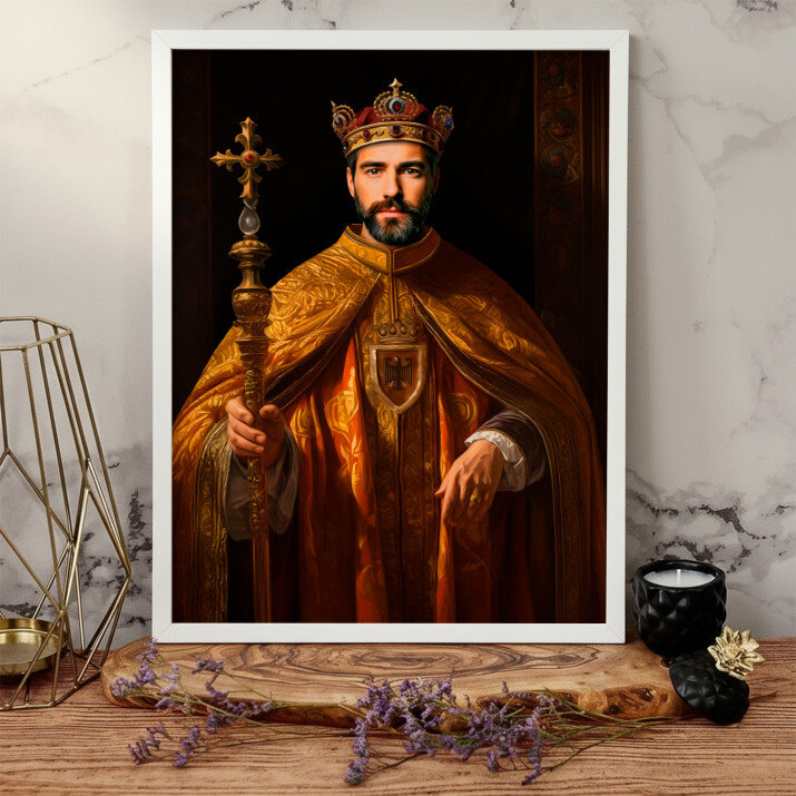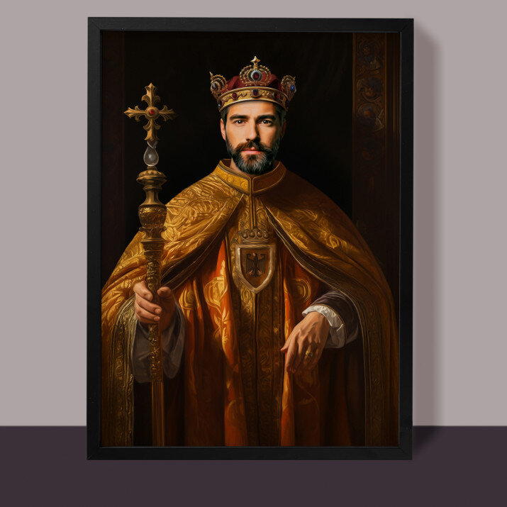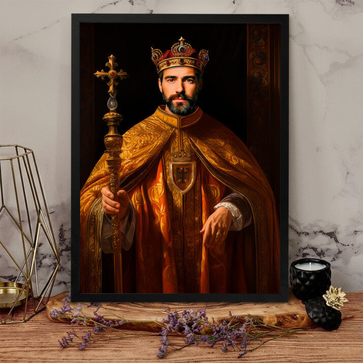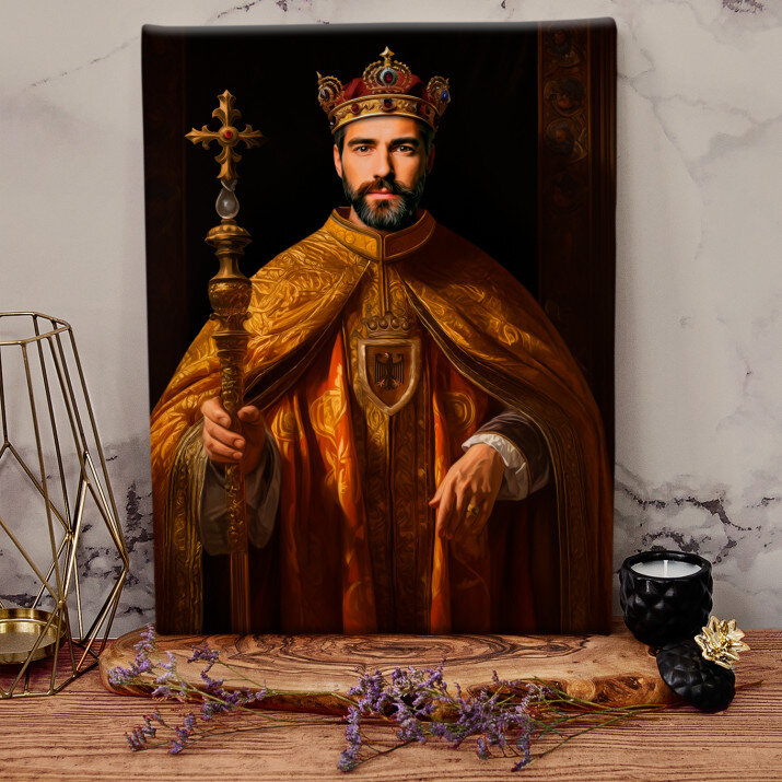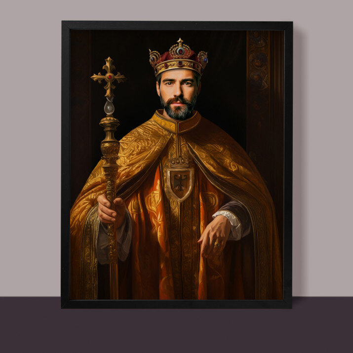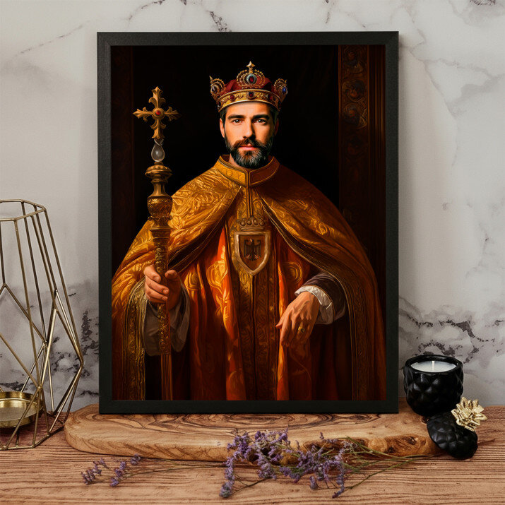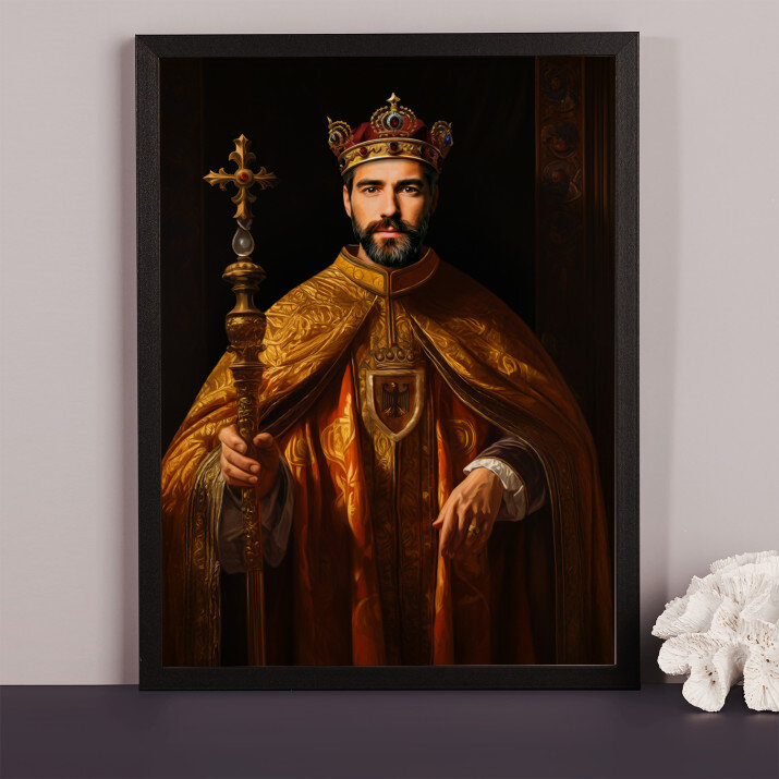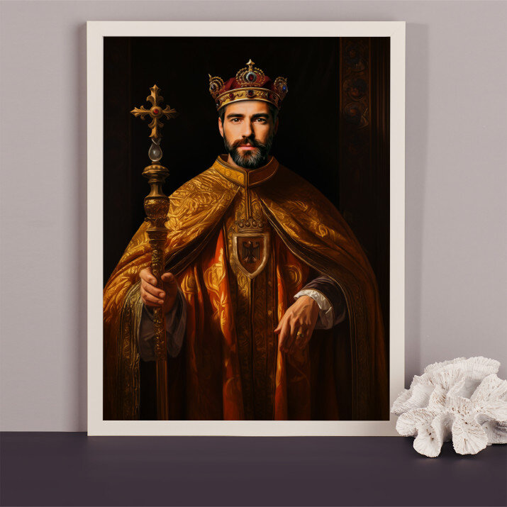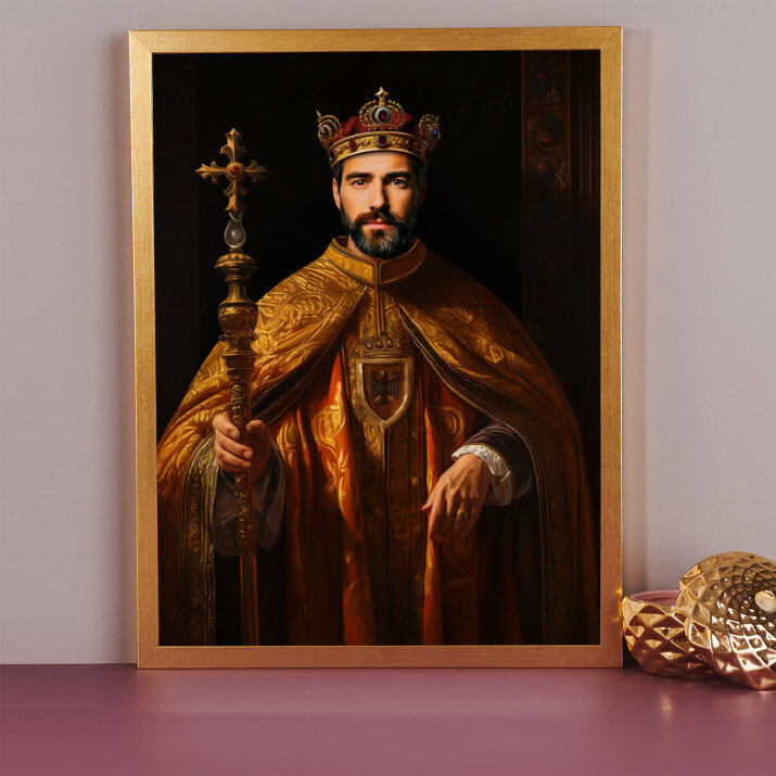 Fii tu eroul Portretului Regal, o imprimare unică, care va fi creată din fotografia trimisă de tine . Un cadou nemaipomenit, datorită căruia persoana iubită se poate simți prințesă, general de armată sau chiar rege! Tot ce ai nevoie este o fotografie de bună calitate, pentru ca graficianul nostru să realizeze un design profesional în stilul ales de Tine. Odată ce ai aprobat designul, vom crea un cadou care îi va impresiona pe cei dragi.REALIZAREA