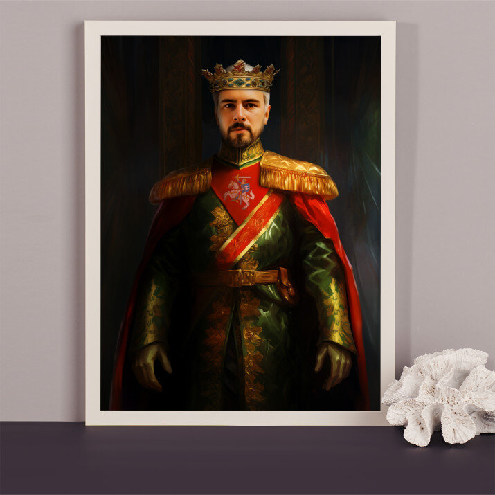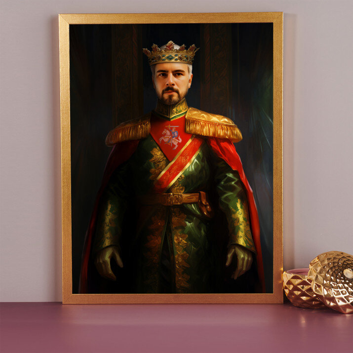 Fii tu eroul Portretului Regal, o imprimare unică, care va fi creată din fotografia trimisă de tine . Un cadou nemaipomenit, datorită căruia persoana iubită se poate simți prințesă, general de armată sau chiar rege! Tot ce ai nevoie este o fotografie de bună calitate, pentru ca graficianul nostru să realizeze un design profesional în stilul ales de Tine. Odată ce ai aprobat designul, vom crea un cadou care îi va impresiona pe cei dragi.REALIZAREA