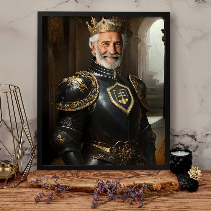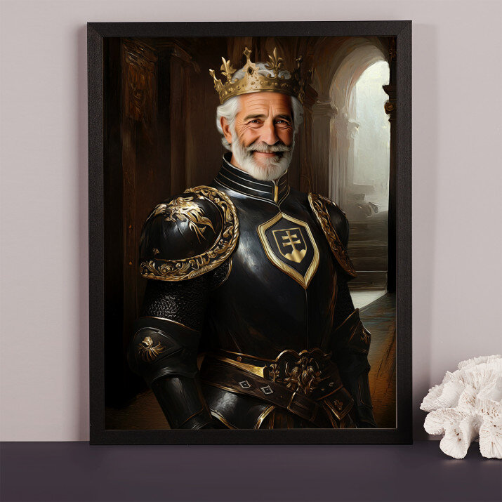 Fii tu eroul Portretului Regal, o imprimare unică, care va fi creată din fotografia trimisă de tine . Un cadou nemaipomenit, datorită căruia persoana iubită se poate simți prințesă, general de armată sau chiar rege! Tot ce ai nevoie este o fotografie de bună calitate, pentru ca graficianul nostru să realizeze un design profesional în stilul ales de Tine. Odată ce ai aprobat designul, vom crea un cadou care îi va impresiona pe cei dragi.REALIZAREA