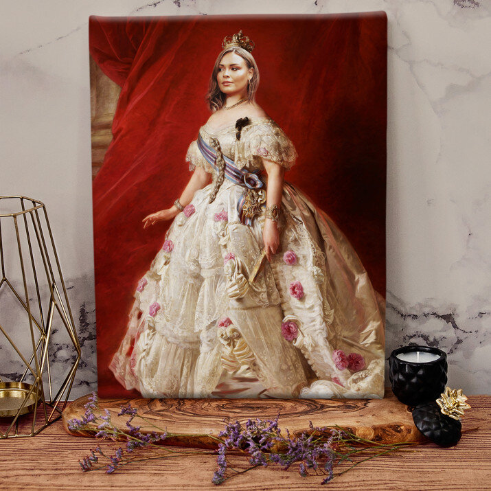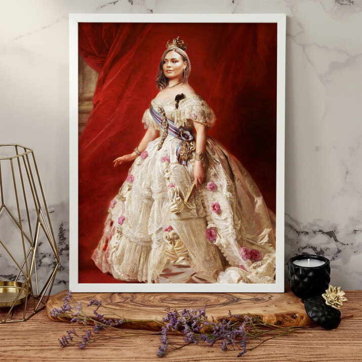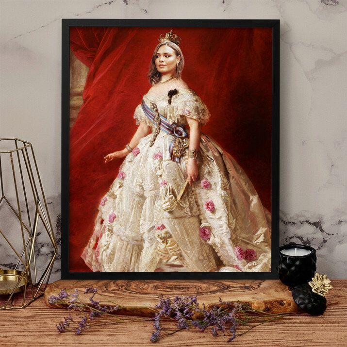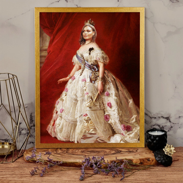 Fii tu eroul Portretului Regal, o imprimare unică, care va fi creată din fotografia trimisă de tine . Un cadou nemaipomenit, datorită căruia persoana iubită se poate simți prințesă, general de armată sau chiar rege! Tot ce ai nevoie este o fotografie de bună calitate, pentru ca graficianul nostru să realizeze un design profesional în stilul ales de Tine. Odată ce ai aprobat designul, vom crea un cadou care îi va impresiona pe cei dragi.REALIZAREA