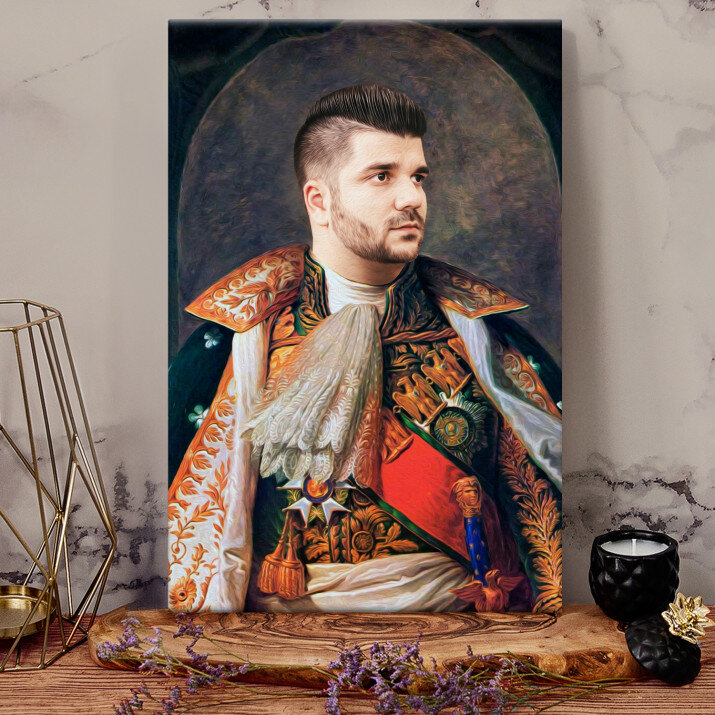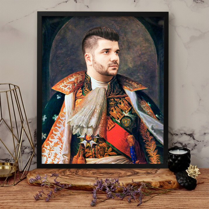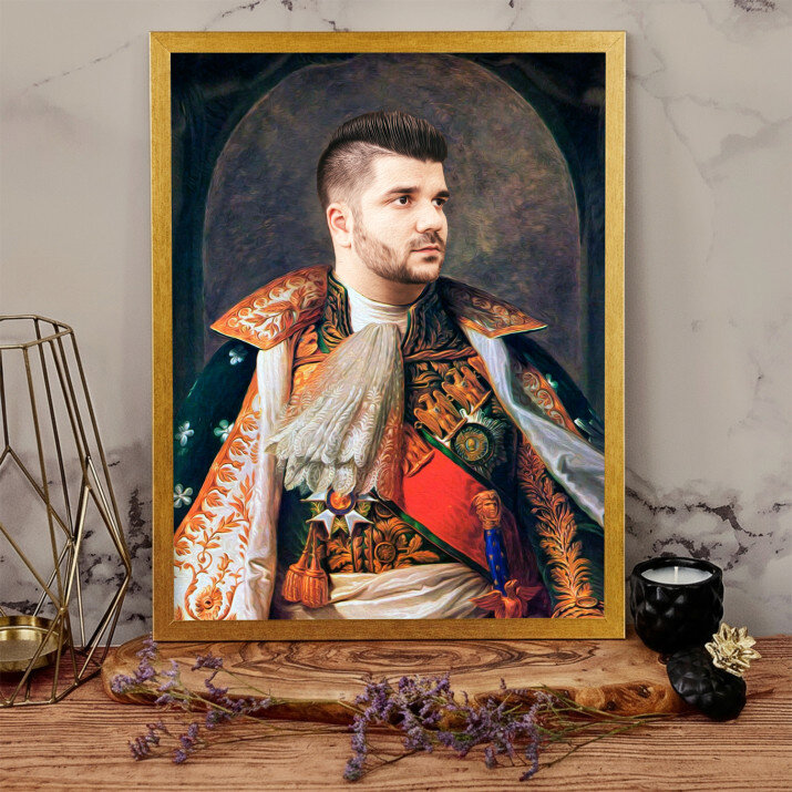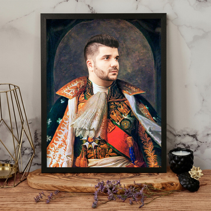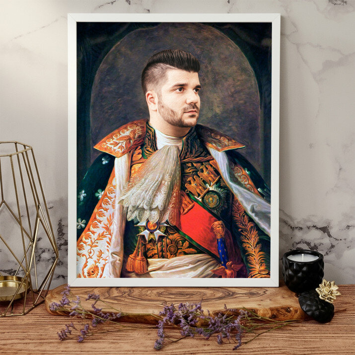 Fii tu eroul Portretului Regal, o imprimare unică, care va fi creată din fotografia trimisă de tine . Un cadou nemaipomenit, datorită căruia persoana dragă se poate simți un adevărat Domnitor sau Rege! Tot ce ai nevoie este o fotografie de bună calitate, pentru ca graficianul nostru să realizeze un design profesional în stilul ales de Tine. Vom crea un cadou care cu siguranță îi va impresiona pe cei dragi.REALIZAREA