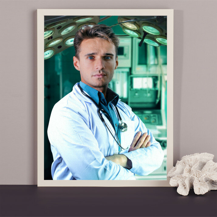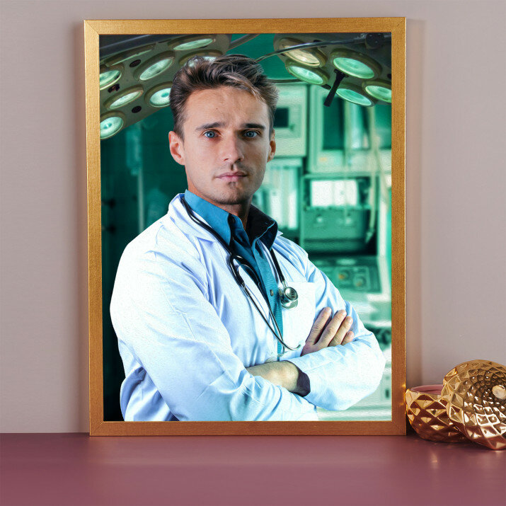 Intensitatea luminii și concentrația de culori imprimate pe portret pot fi ușor diferite de cele ale modelului trimis. Aceasta rezultă din setările individuale ale dispozitivului de imprimare pe care este afișat proiectul.