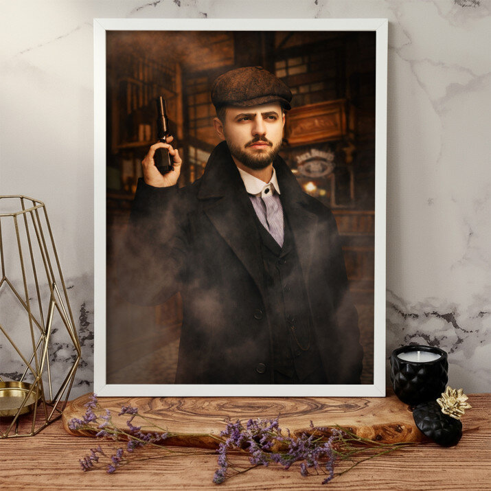 Puțină fantezie în colecția noastră de cadouri! Cu siguranță cunoști pe cineva care visează în secret să zboare în cosmos sau să trăiască o aventură sălbatică și periculoasă în " Occidentul Sălbatic ". Ar fi greu să se realizeze atât de imediat, dar poți oricând să îi oferi un portret impresionant, care cu siguranță îl va face foarte fericit.Ai nevoie doar de o fotografie de bună calitate, iar graficianul nostru va realiza un portret în stilul ales de Tine. Cadoul creat, cu siguranță îi va impresiona pe cei dragi!