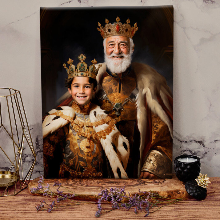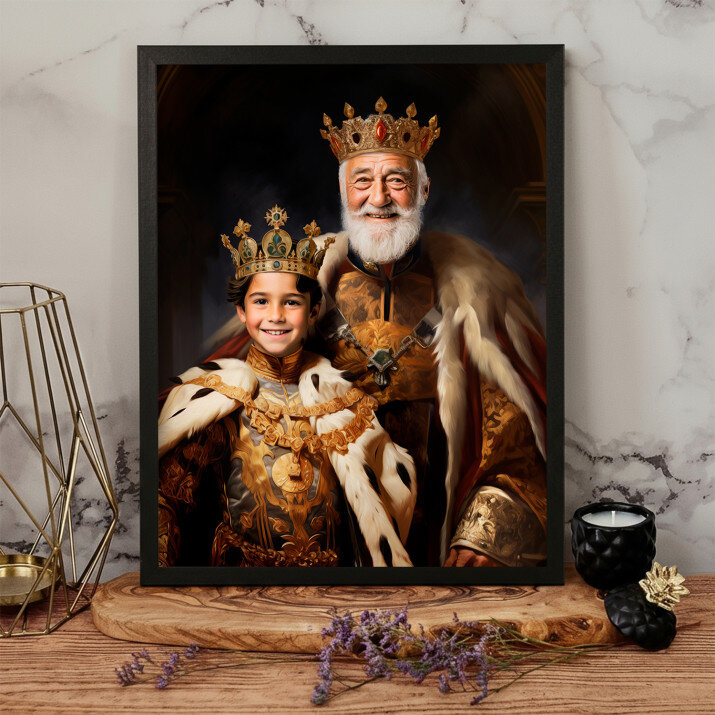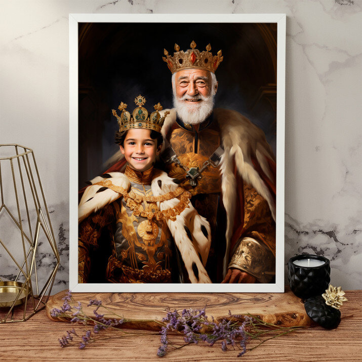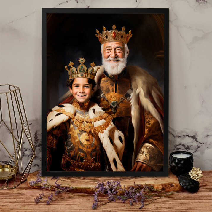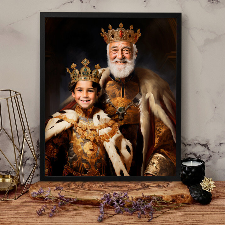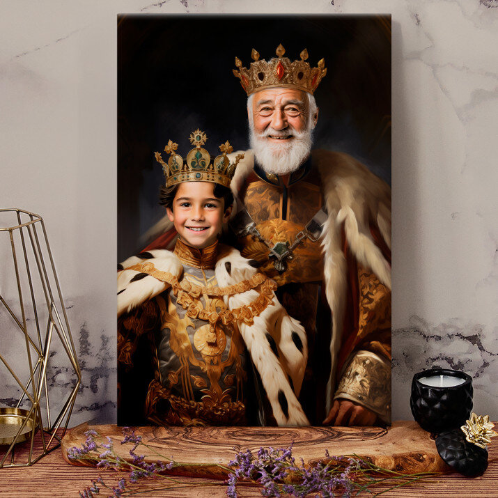 Sunt încântat de acest tablou pe pânză. Cuplul regal nu este doar o decorare, ci și un simbol al eleganței și prestigiului.