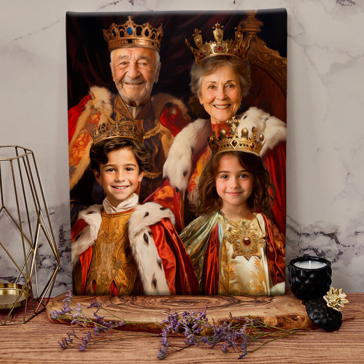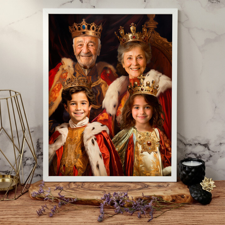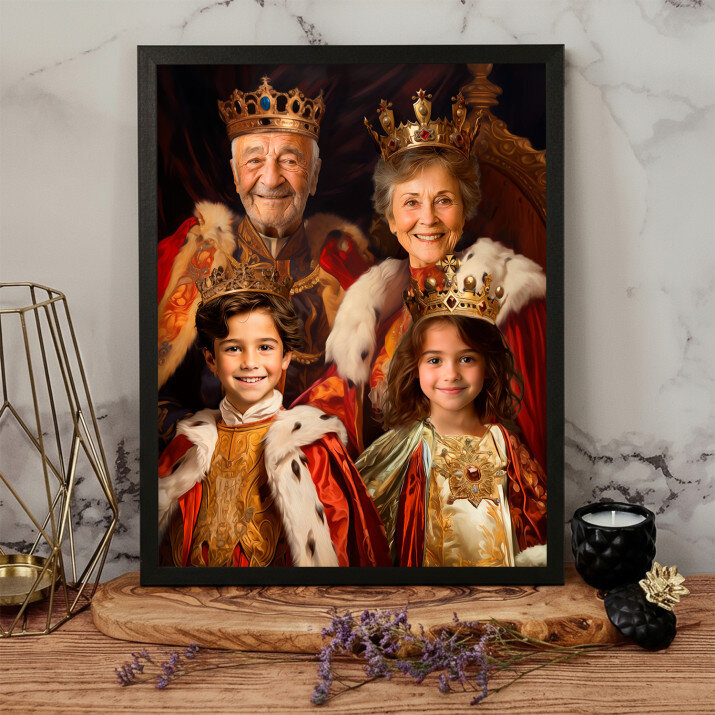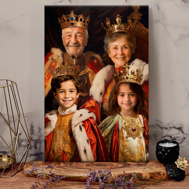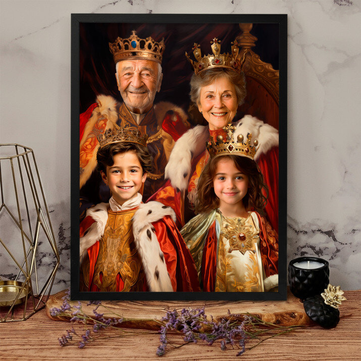 Sunt încântat de acest tablou pe pânză. Cuplul regal nu este doar o decorare, ci și un simbol al eleganței și prestigiului.