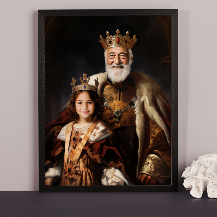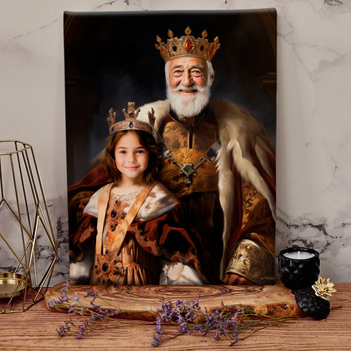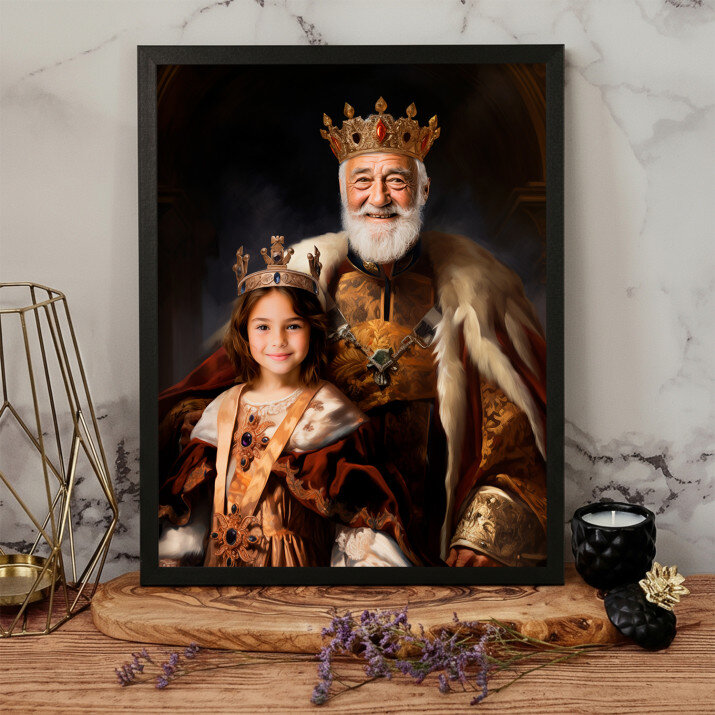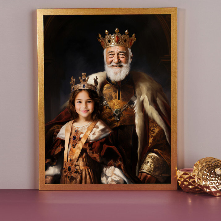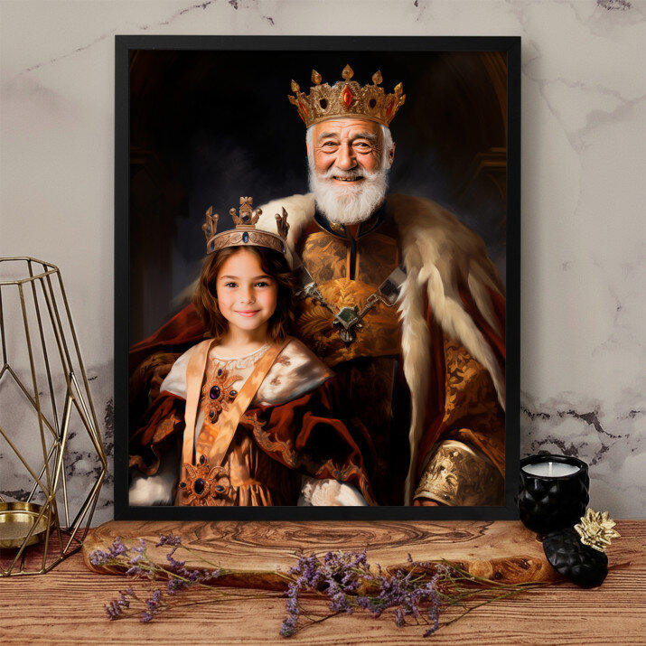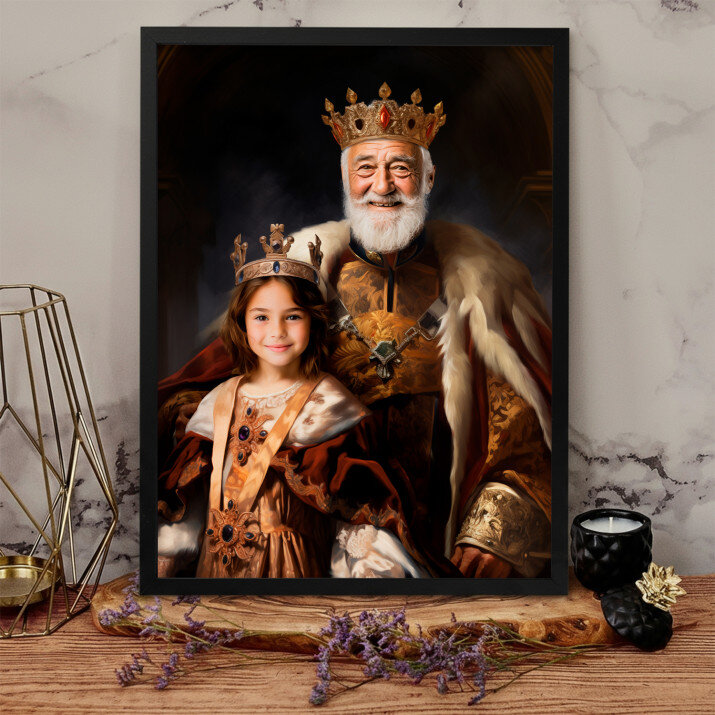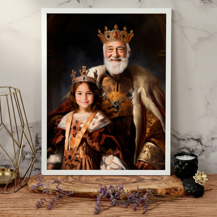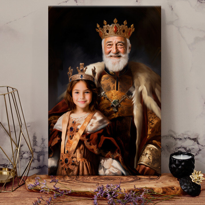 Sunt încântat de acest tablou pe pânză. Cuplul regal nu este doar o decorare, ci și un simbol al eleganței și prestigiului.