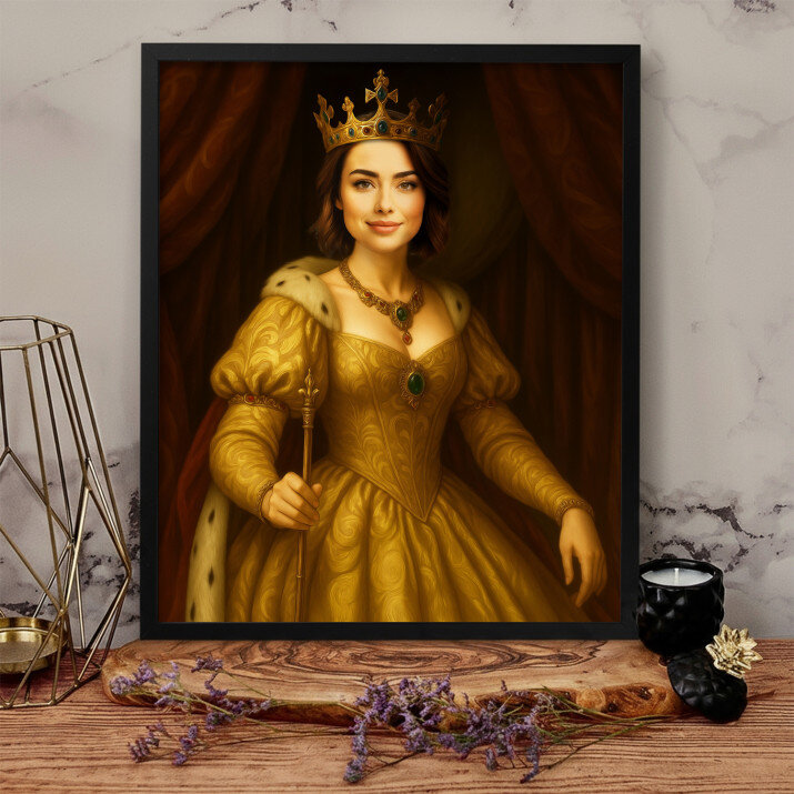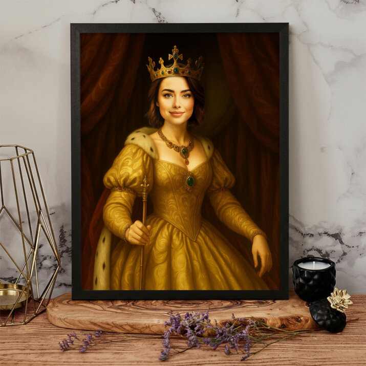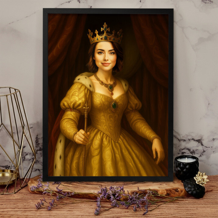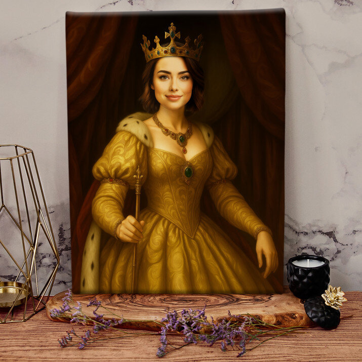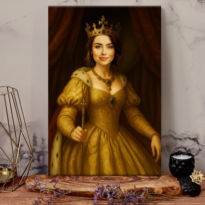 Acesta este o frumoasă capodoperă artistică. Regina pe pânză este o alegere excelentă care va conferi interiorului tău un caracter aparte.