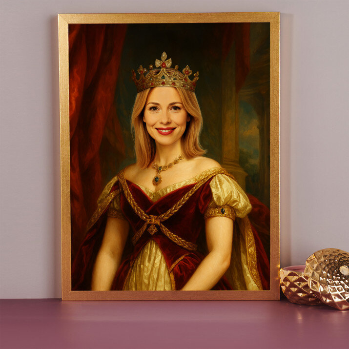 Sunt încântat de acest tablou pe pânză. Cuplul regal nu este doar o decorare, ci și un simbol al eleganței și prestigiului.