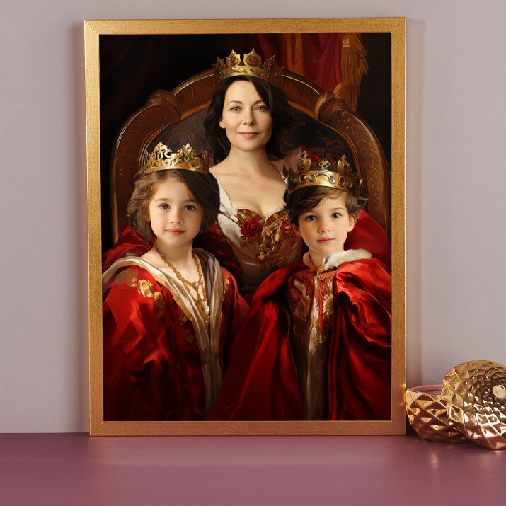 Sunt încântat de acest tablou pe pânză. Cuplul regal nu este doar o decorare, ci și un simbol al eleganței și prestigiului.