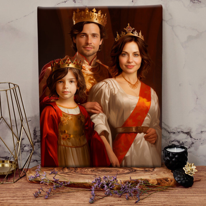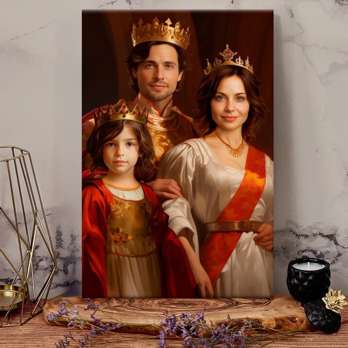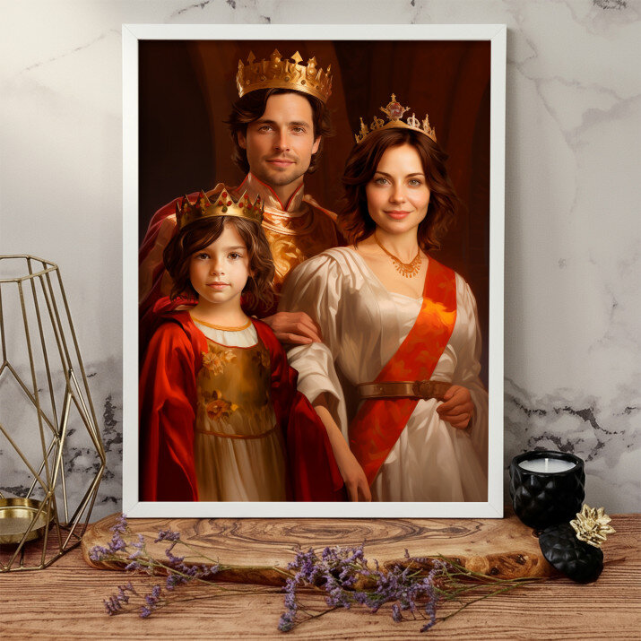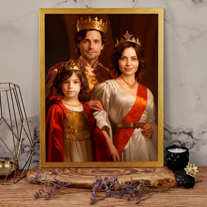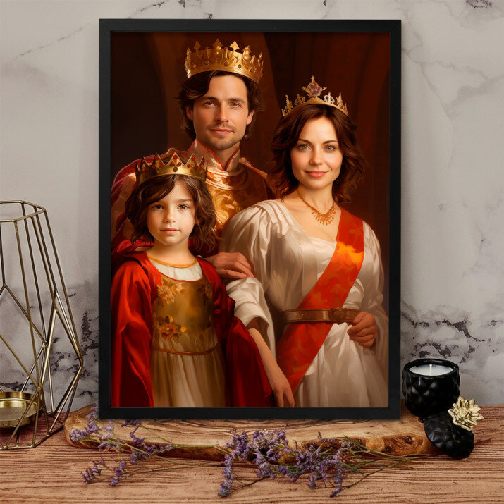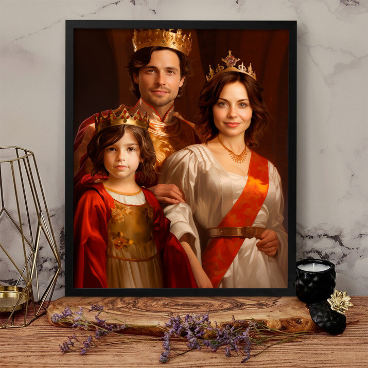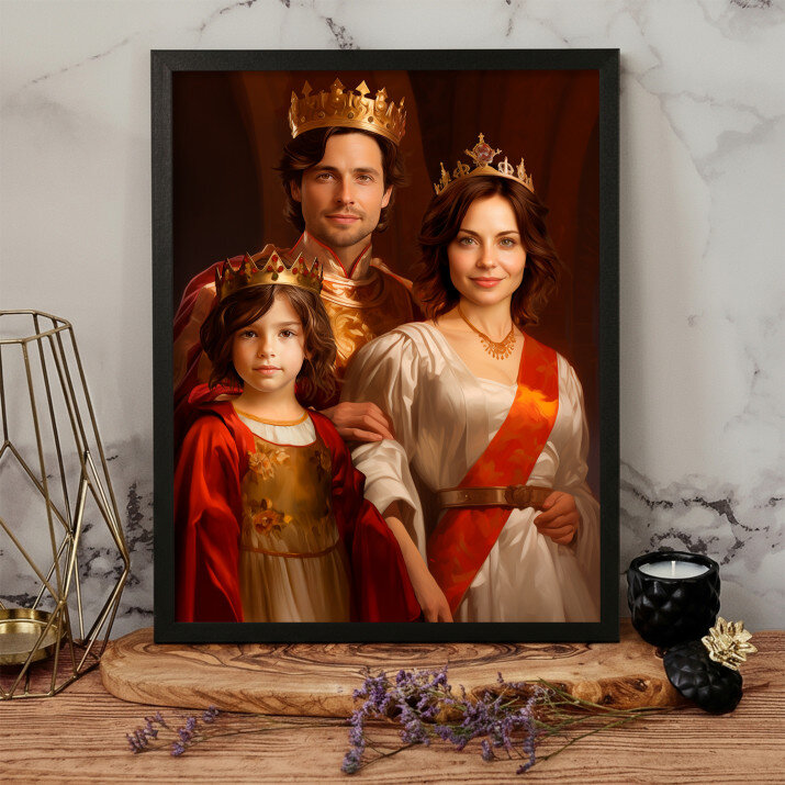 Sunt încântat de acest tablou pe pânză. Cuplul regal nu este doar o decorare, ci și un simbol al eleganței și prestigiului.