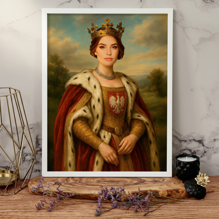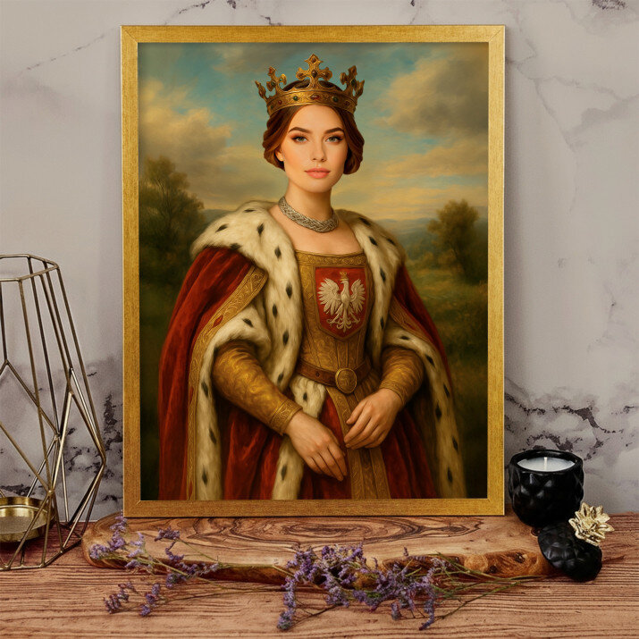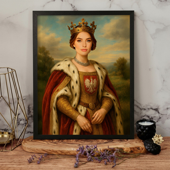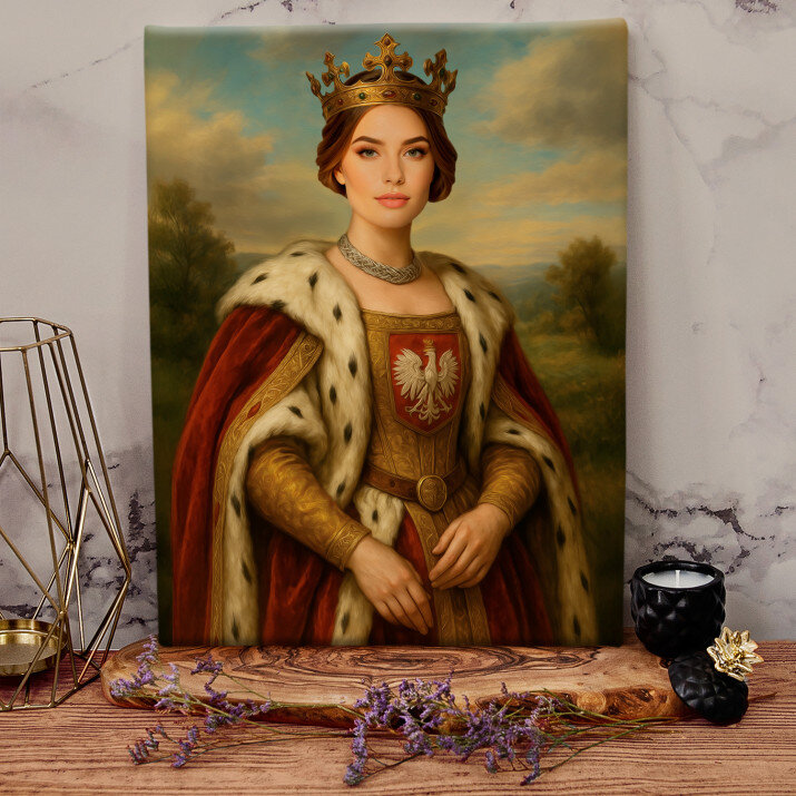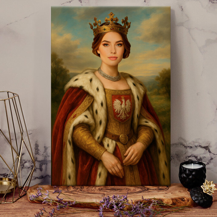 Acest portret regal pe pânză este o adevărată bijuterie. Designul expresiv și calitatea înaltă a execuției impresionează.