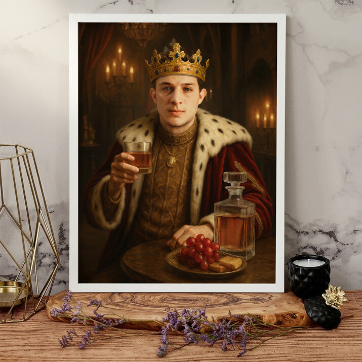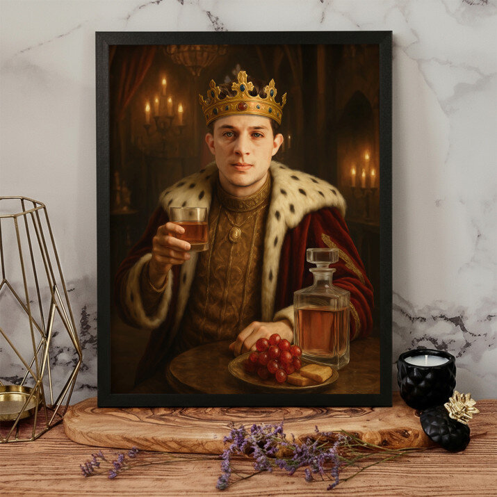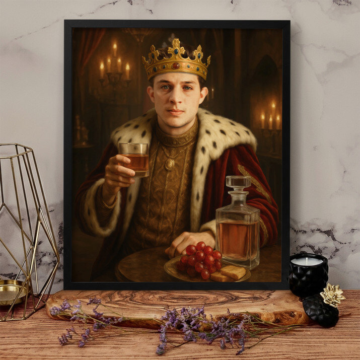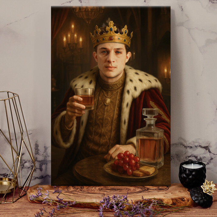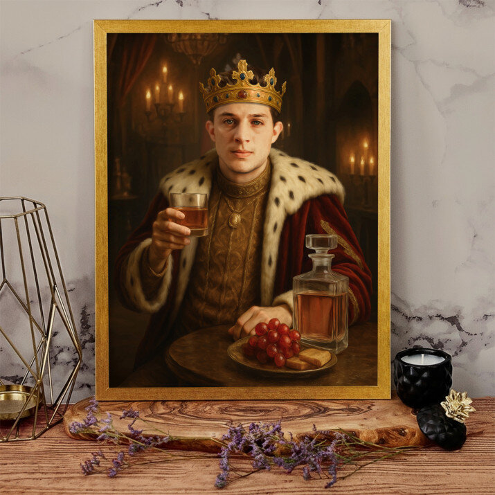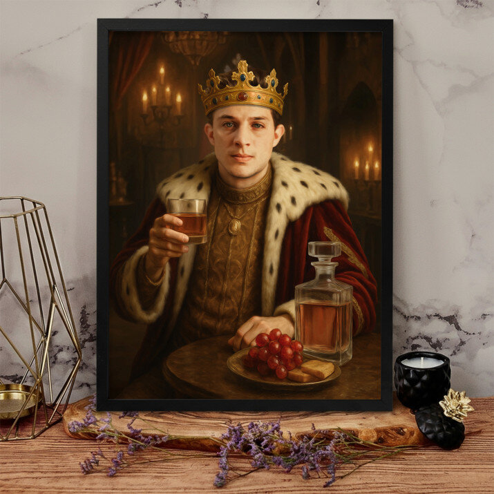 Sunt încântat de acest tablou pe pânză. Cuplul regal nu este doar o decorare, ci și un simbol al eleganței și prestigiului.