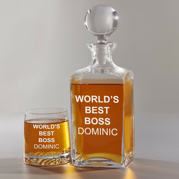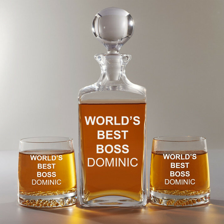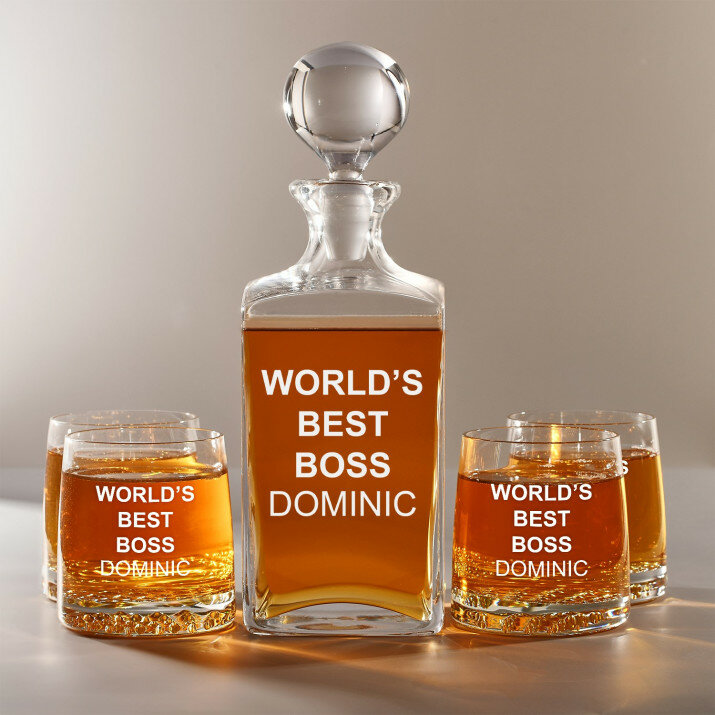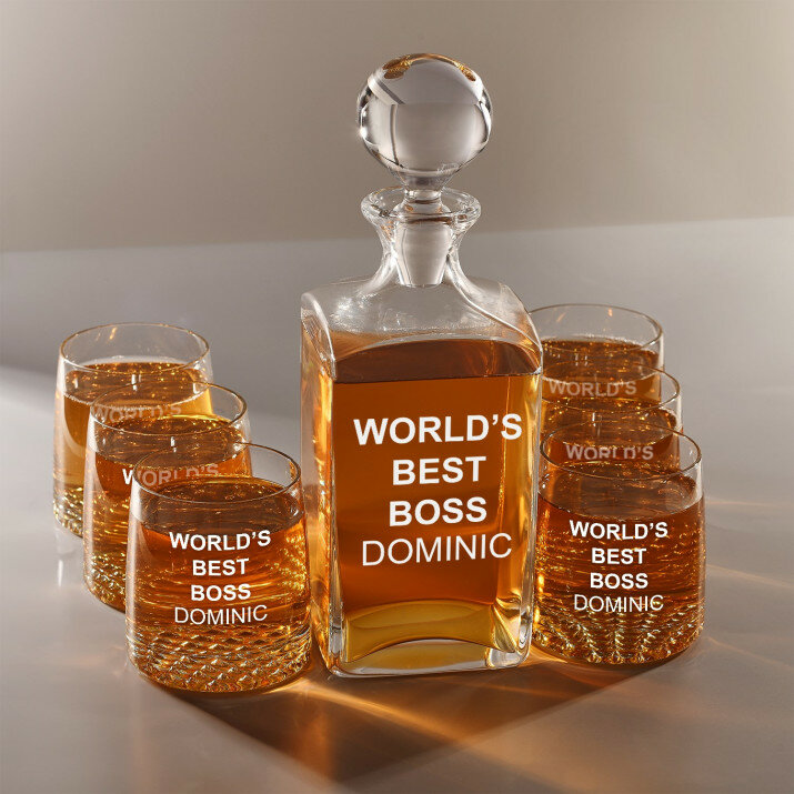 Setul cu un decantor și pahare gravate este un cadou perfect pentru iubitorii de whisky. Eleganță și stil.