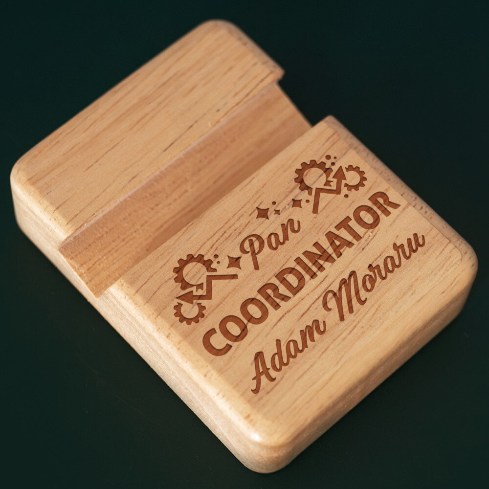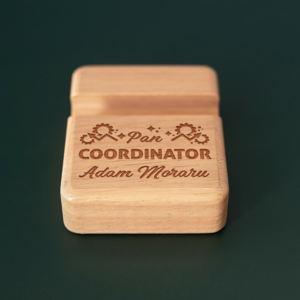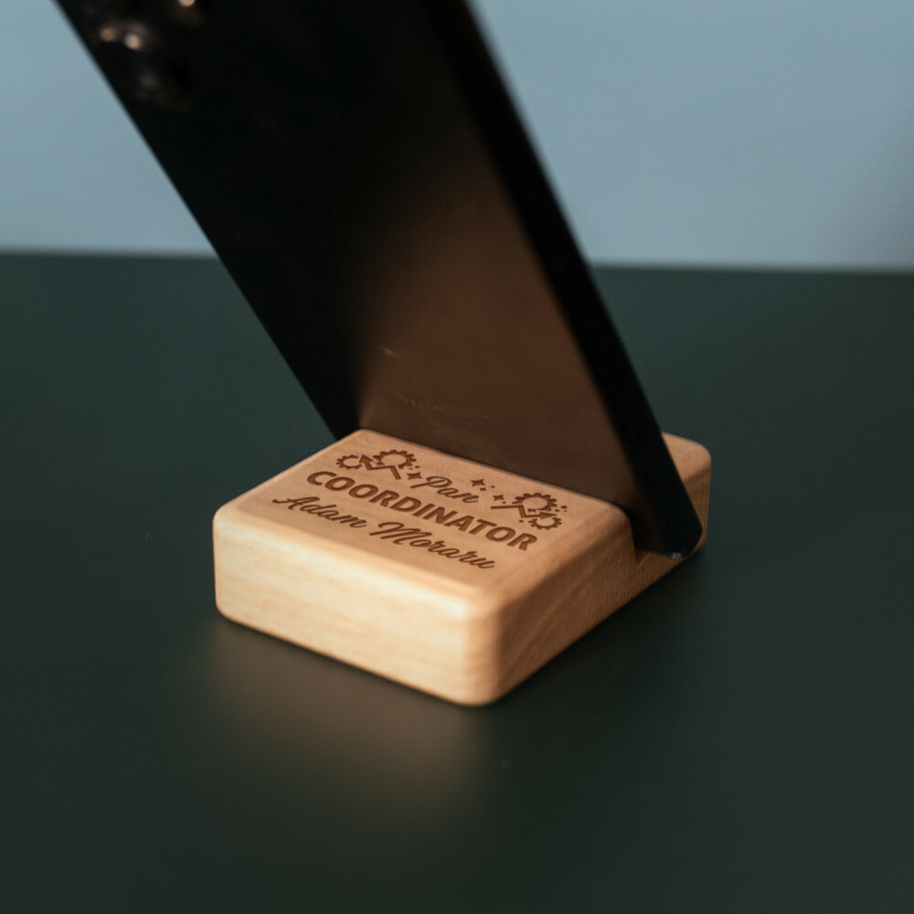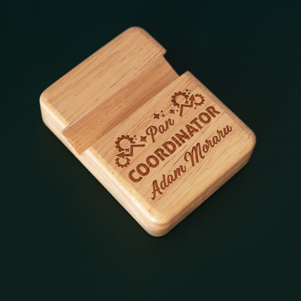 Suportul din bambus cu gravură impresionantă este un gadget original și practic pentru telefonul tău. Forma potrivită a suportului permite ca telefonul să fie așezat atât pe verticală, cât și pe orizontală. Suportul are o culoare de lemn natural, iar stilul său minimalist se va potrivi cu orice birou.