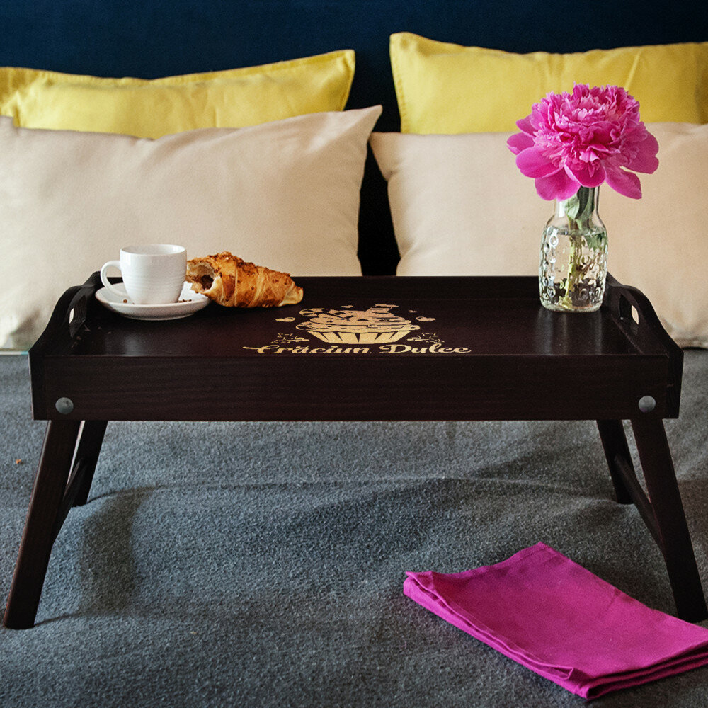 O tavă fermecătoare pe picioare pliabile.