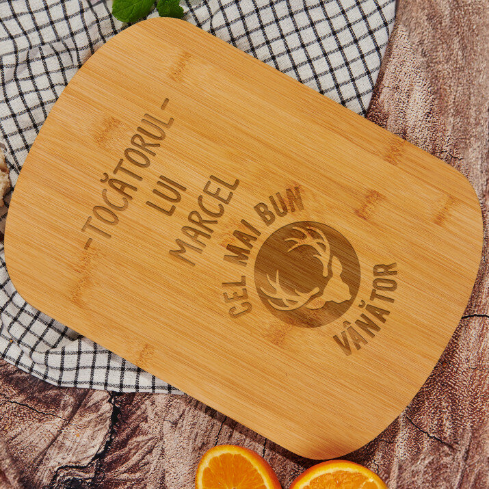 Tocător Altom Design, confecționat din bambuc de de înaltă calitate va fi un instrument indispensabil la bucătărie. Dimensiunile sale practice, oferă un spațiu adecvat pentru a toca, tăia și servi o varietate de mâncăruri. Acest gadget de bucătărie nu numai că se remarcă prin aspectul său frumos, dar este, de asemenea, extrem de durabil și rezistent la zgârieturi . În plus, ascuțitoarea inclusă va permite menținerea cuțitelor în stare - perfect ascuțite, ceea ce se reflectă în precizie în timpul preparării bucatelor. Pe suprafața tocătorului, aplicăm un design personalizat ales de tine.