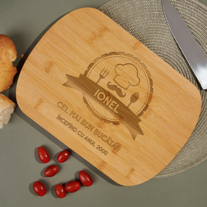 Tocător Altom Design, confecționat din bambuc de de înaltă calitate va fi un instrument indispensabil la bucătărie. Dimensiunile sale practice, oferă un spațiu adecvat pentru a toca, tăia și servi o varietate de mâncăruri. Acest gadget de bucătărie nu numai că se remarcă prin aspectul său frumos, dar este, de asemenea, extrem de durabil și rezistent la zgârieturi . În plus, ascuțitoarea inclusă va permite menținerea cuțitelor în stare - perfect ascuțite, ceea ce se reflectă în precizie în timpul preparării bucatelor. Pe suprafața tocătorului, aplicăm un design personalizat ales de tine.Dimensiunile tocătorului: aprox. 37,5 cm x 25,5 cm x 1,5 cm