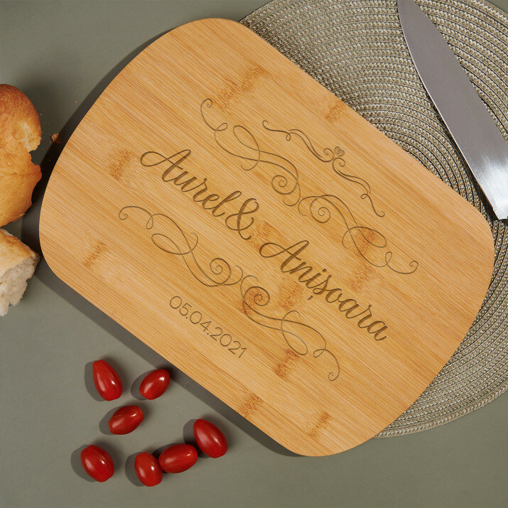 Tocător Altom Design, confecționat din bambuc de de înaltă calitate va fi un instrument indispensabil la bucătărie. Dimensiunile sale practice, oferă un spațiu adecvat pentru a toca, tăia și servi o varietate de mâncăruri. Acest gadget de bucătărie nu numai că se remarcă prin aspectul său frumos, dar este, de asemenea, extrem de durabil și rezistent la zgârieturi . În plus, ascuțitoarea inclusă va permite menținerea cuțitelor în stare - perfect ascuțite, ceea ce se reflectă în precizie în timpul preparării bucatelor. Pe suprafața tocătorului, aplicăm un design personalizat ales de tine.Dimensiunile tocătorului: aprox. 37,5 cm x 25,5 cm x 1,5 cm