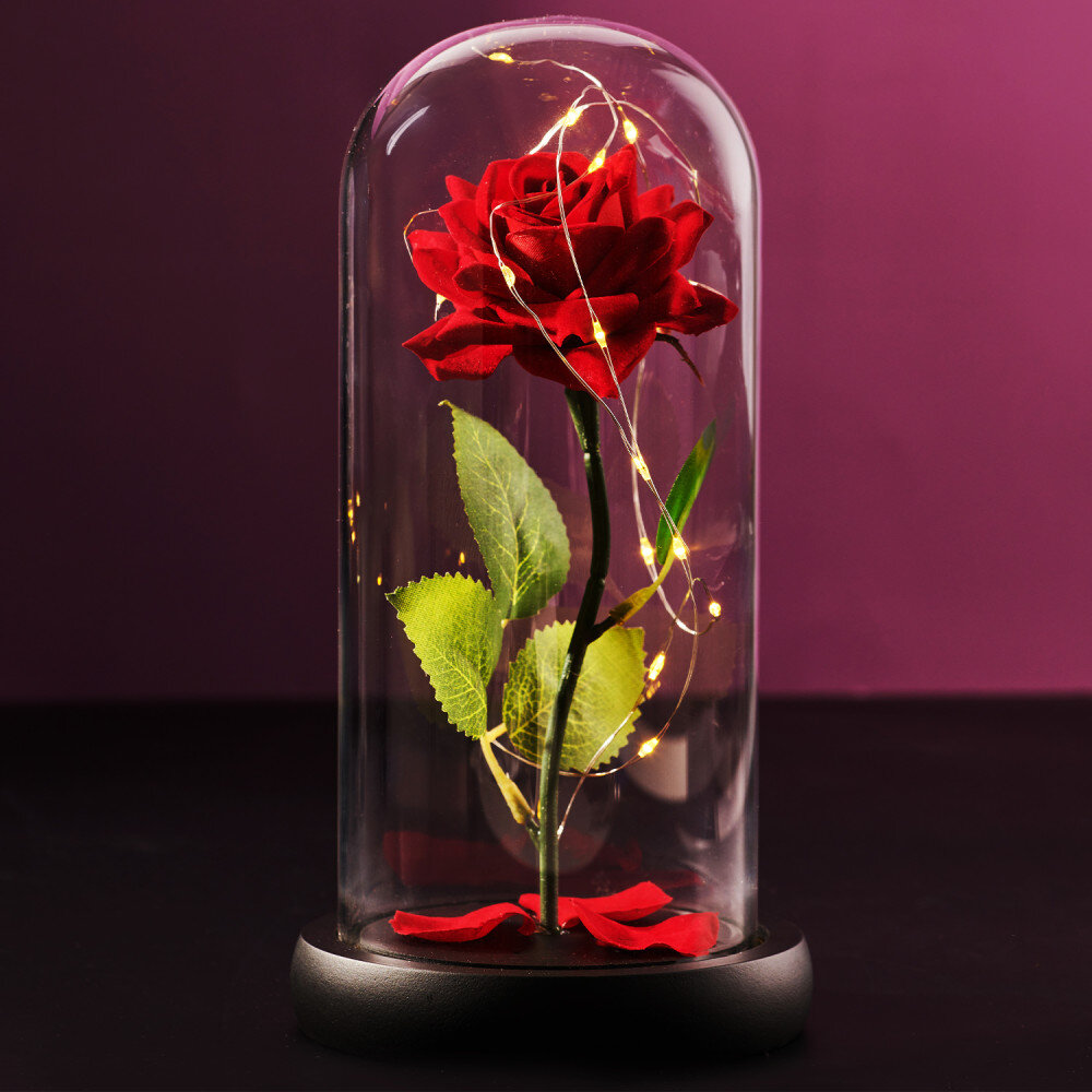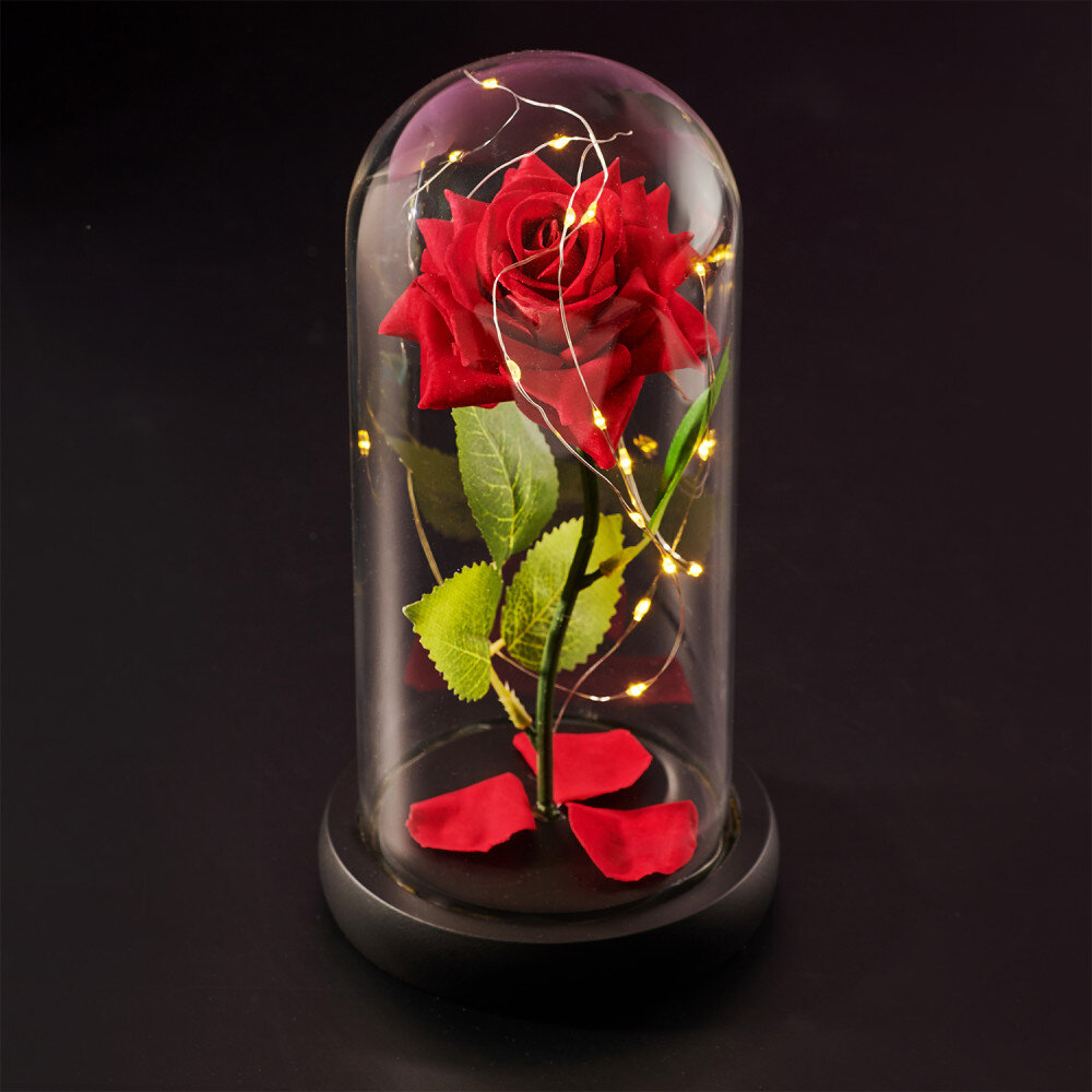Trandafirul etern sub o cupolă de sticlă este un cadou deosebit, care poate fi dăruit la multe ocazii. Acesta este un cadou frumos și de neuitat, care va deveni o amintire frumoasă pentru ani la rând! Principala caracteristică a acestui produs este cupola sa rezistentă și transparentă, care protejează trandafirul delicat și îi conferă un aspect elegant. Suportul realizat din plastic de înaltă calitate asigură stabilitatea și durabilitatea întregii compoziții.În plus, luminițele LED plasate în interiorul trandafirului creează o atmosferă romantică. Pe suprafața cupolei de sticlă puteți adăuga inițialele gravate, un nume sau un mesaj scurt pentru a face acest cadou și mai special. Trandafirul etern este livrat într-o cutie de cadou.