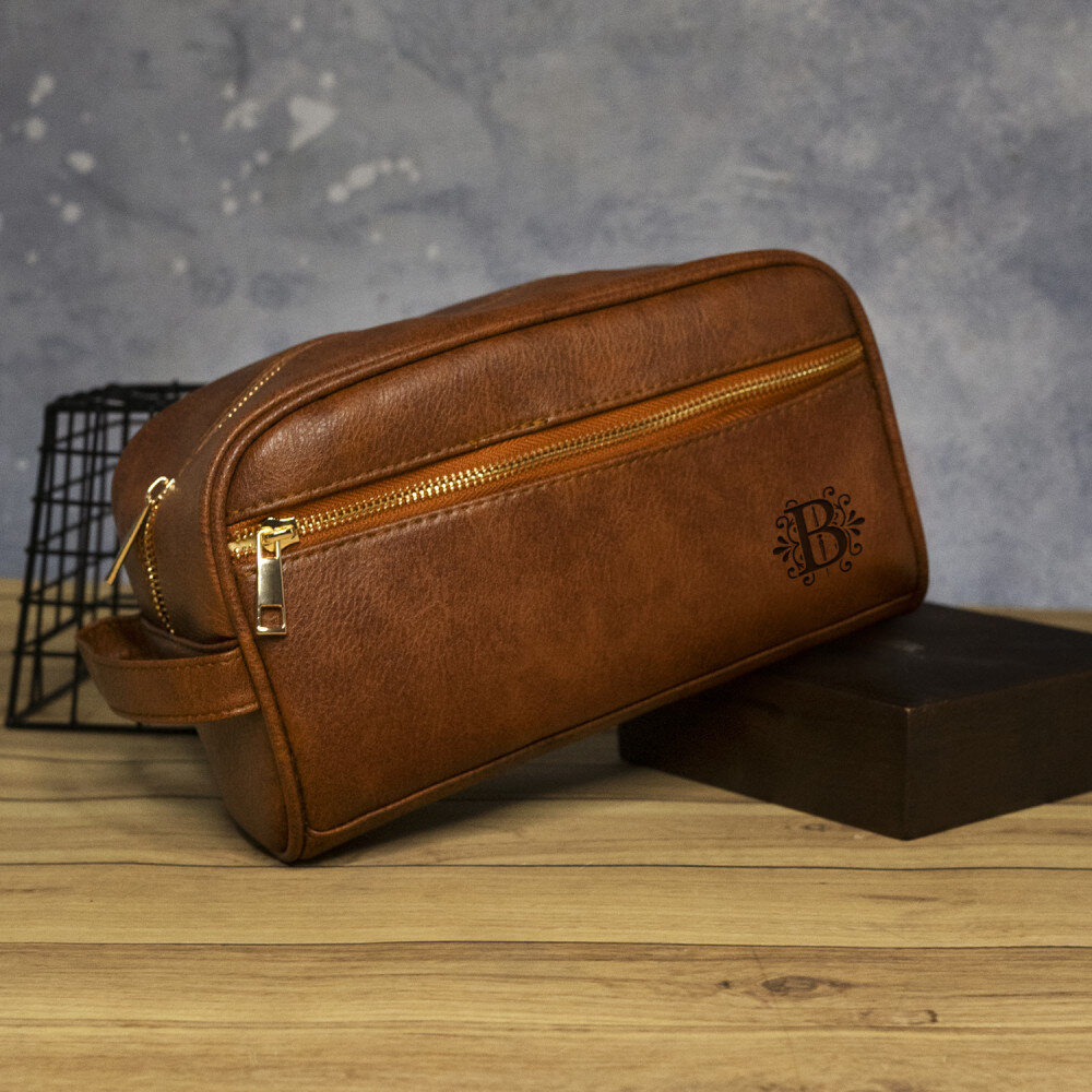 Trusa este confecționată dintr-un material asemănător cu pielea NuHide® PU. Culoarea maro. Finisajul de înaltă calitate asigură durabilitate, un aspect elegant și rezistență la murdărie. Interiorul trusei de toaletă este lavabil și este prevăzut cu o căptușeală din țesătură cu dungi. Totul este completat cu decorațiuni metalice. Trusa are, de asemenea, un buzunar ascuns. Acesta este un cadou foarte versatil, care va fi util pentru toată lumea!