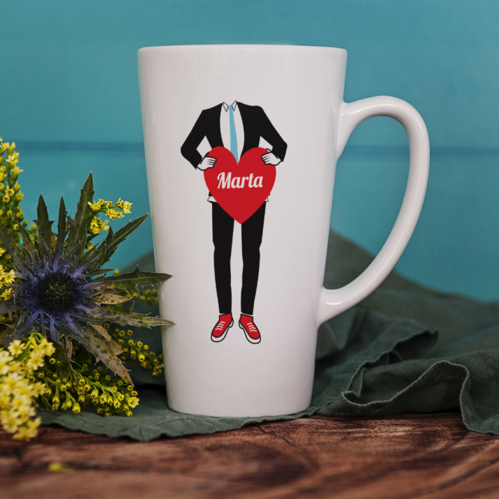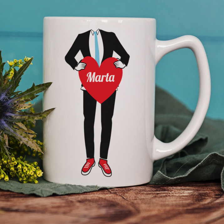 Sunt disponibile și căni cu un mâner în formă de inimă și un interior roz, capacitate de 330 ml