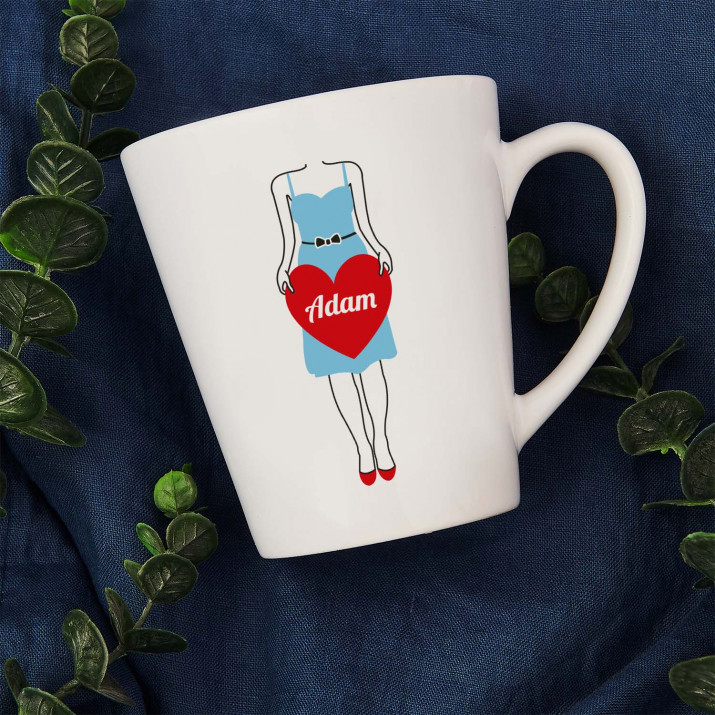 Sunt disponibile și căni cu un mâner în formă de inimă și un interior roz, capacitate de 330 ml