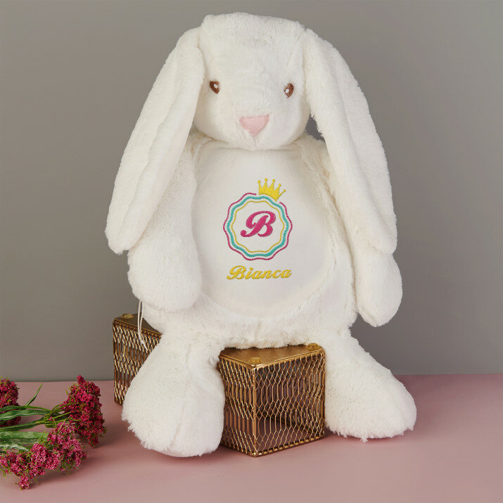 Un ursuleț sau iepuraș de pluș, mare și extrem de moale, decorat cu unul dintre modelele noastre personalizate, brodate. Jucărie de pluș, compoziție: 100% poliester. Mascota are un fermoar unic care permite ca interiorul să fie scos și curățat cu ușurință. Ursulețul de pluș este sigur pentru copii de toate vârstele. Se spală numai manual. Înălțimea ursulețului de pluș: 45 cm.
