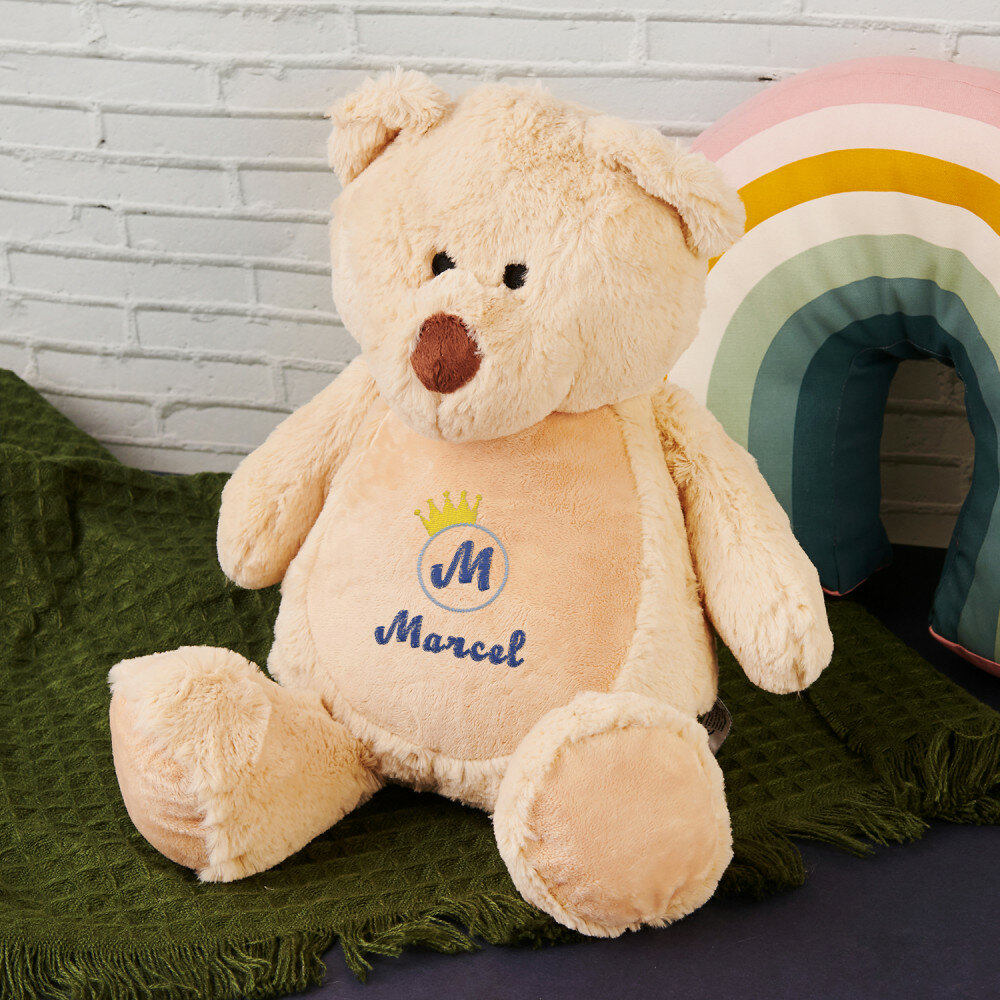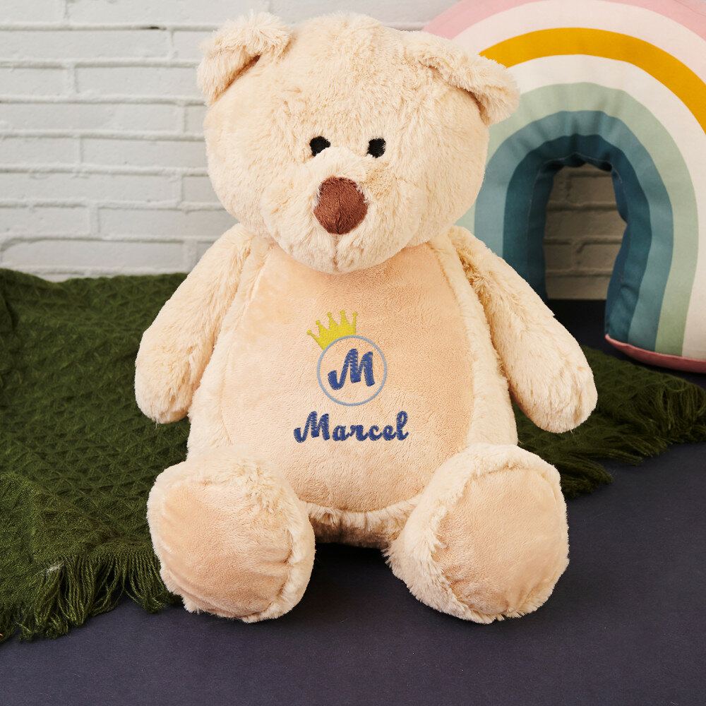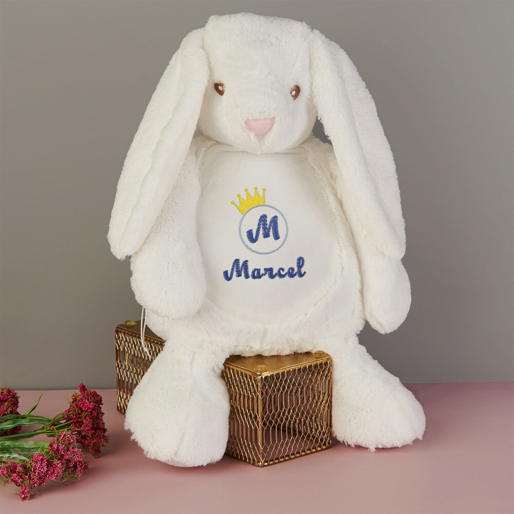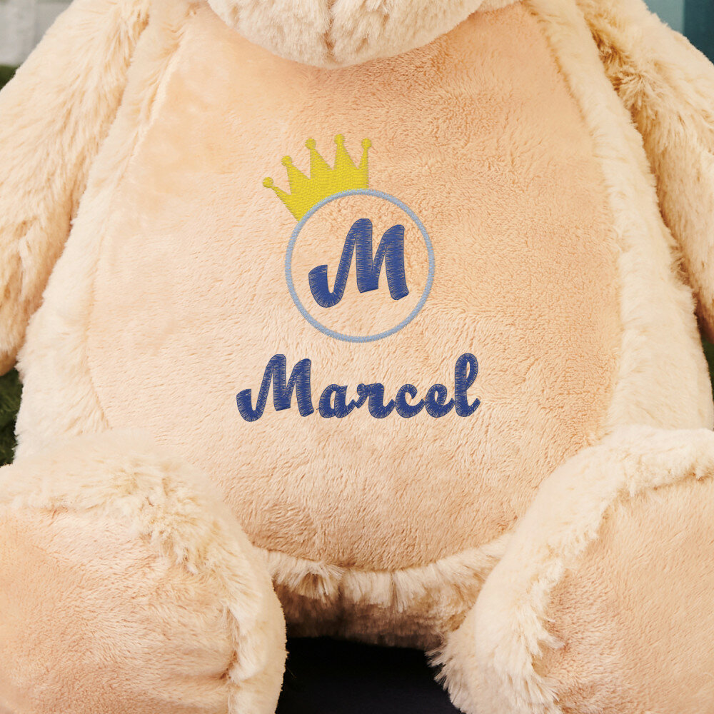 Un ursuleț sau iepuraș de pluș, mare și extrem de moale, decorat cu unul dintre modelele noastre personalizate, brodate. Jucărie de pluș, compoziție: 100% poliester. Mascota are un fermoar unic care permite ca interiorul să fie scos și curățat cu ușurință. Ursulețul de pluș este sigur pentru copii de toate vârstele. Se spală numai manual. Înălțimea ursulețului de pluș: 45 cm.