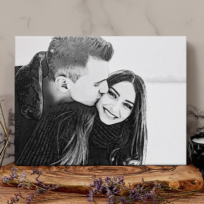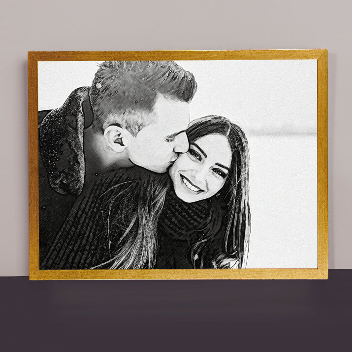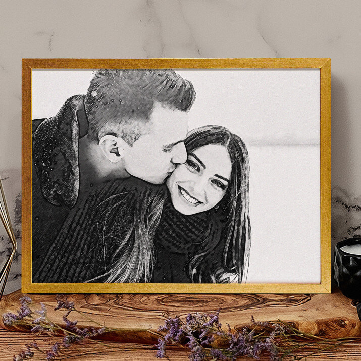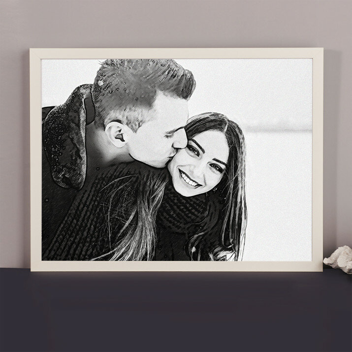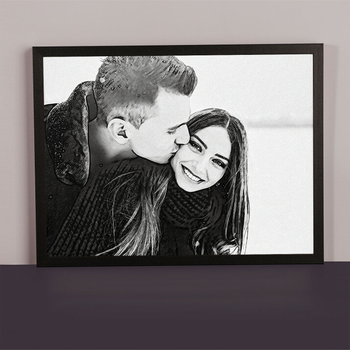 Devino protagonistul unui Portret Stilat, și anume un imprimeu unic care va fi creat din fotografia trimisă de tine . Îți place cel mai mult stilul subtil al schiței în creion? Cu siguranță vei găsi un model pentru tine! Sau poate un desen plin de culori inspirat din picturile în ulei? De asemenea îl vei găsi! Dispunem de o varietate foarte mare de produse, tot de ce ai nevoie este o fotografie de bună calitate, pentru ca graficianul nostru să realizeze un proiect profesional în stilul ales de Tine. După ce vei aproba proiectul, vom crea un cadou care va impresiona persoanele dragi ție. h3>FABRICAREA Există 2 opțiuni pentru produsul final:- imprimarea afișului pe hârtie fotografică în ramă 30 x 40 cm de culoare negru, alb sau auriu